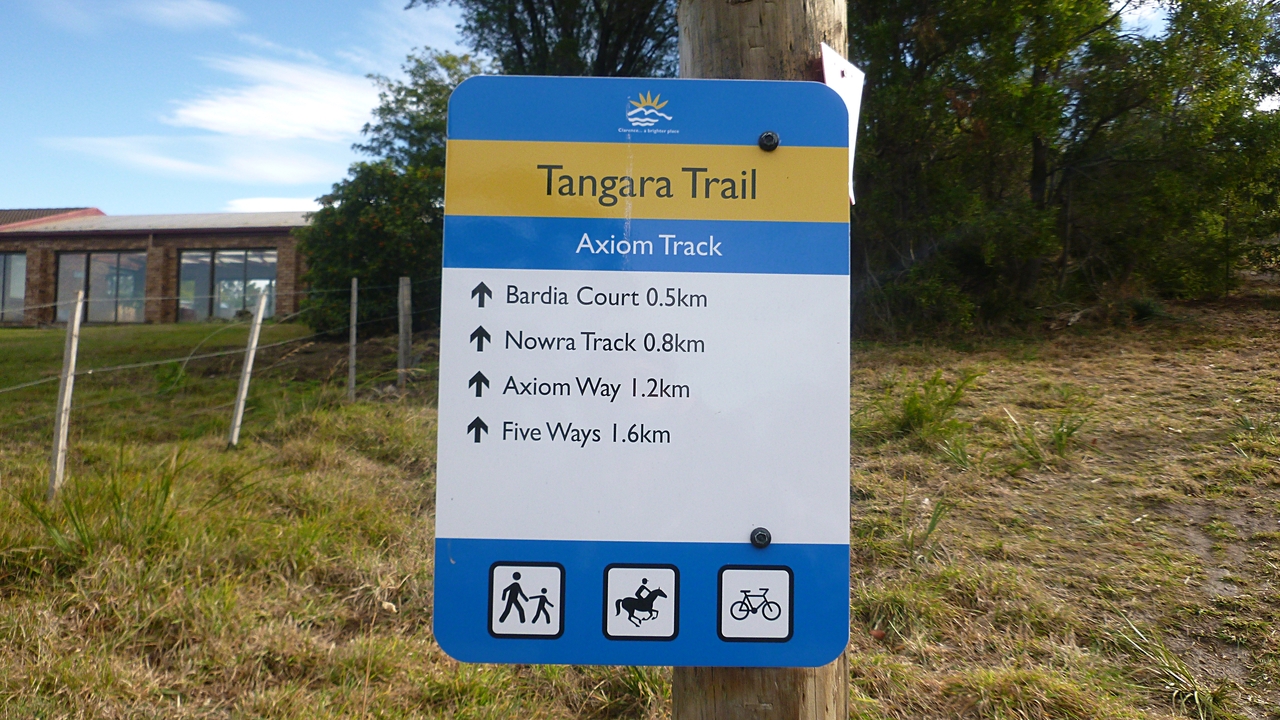 We come out on the Axiom Way, cross over into Penelope Pl. and walk a short distance to pick up another part of the Tangara Trail.
