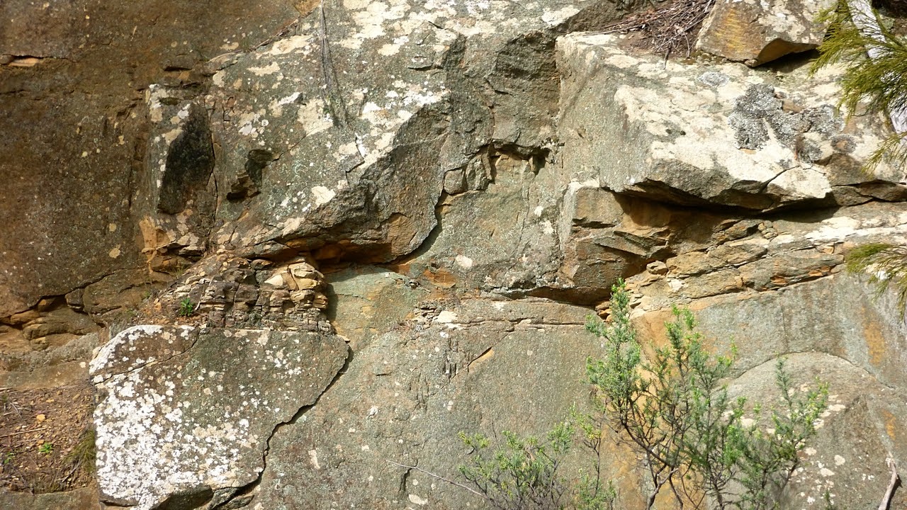 | We go past an old quarry. I'm sure a geologist could explain the deposits between some of the rock layers |