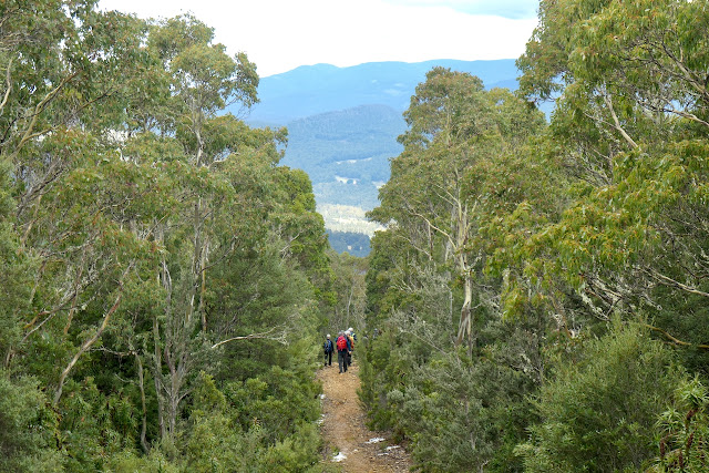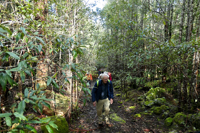 If you are observant you may notice a gathering of walkers about 20metres along the track. What happened was that Angela while stepping into what she thought was a shallow puddle of about 30cm diameter actually sunk about knee deep into a spring. It certainly added some entertainment when she suddenly sunk.