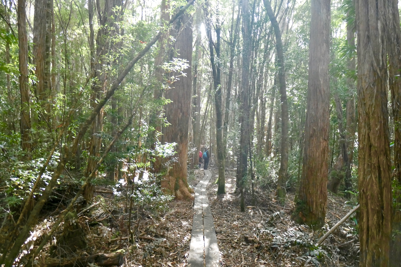 A great example of Anodopetulum Biglandulosum (Horizontal Scrub) where the main trunk of the tree has formed an arch over the track and there are 5 plus new branches emerging from the top side of the trunk reaching for the sunlight.
