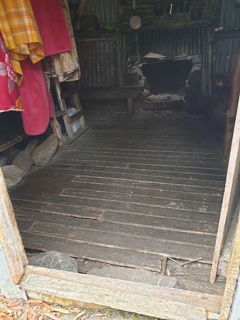 The Sama Hut was spotted through the trees after climbing downhill. The hut is well maintained and sits on small ledge beneath a rocky crag.