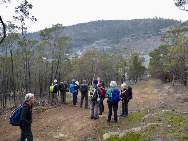 Some of the group contemplating whether to follow the power lines down and across Flagstaff Gully Road before continuing on to the Meehan Range.